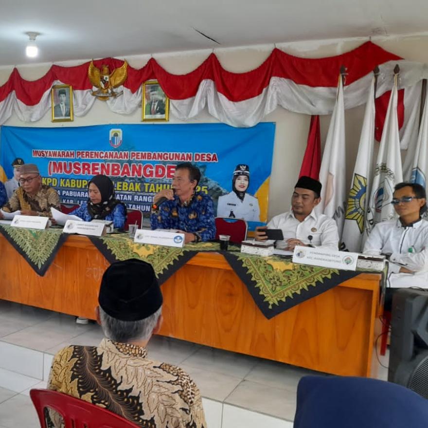 Rabu, 17 Januari 2023. Desa Pabuaran Kecamatan Rangkasbitung Kabupaten Lebak Provinsi Banten, mengadakan musyawarah desa yang dihadiri oleh pihak Kecamatan, Pendamping Kecamatan/Desa, Kepala Desa, Perangkat dan Staf Desa, BPD, LPM, Babinsa dan Bhabinkamtibmas, dan Masyarakat desa Pabuaran mengikuti atau menghadiri Musrenbang. Musrenbang Desa merupakan singkatan dari Musyawarah Perencanaan Pembangunan Desa. Musrenbang Desa diatur dalam Permendes, PDTT No.21 Tahun 2020. Di samping itu, ketentuan mengenai Musrenbang Desa juga disebutkan dalam Permendagri No.114 Tahun 2014. Musrenbang Desa adalah musyawarah antara Badan Permusyawaratan Daerah, Pemerintah Desa, dan unsur masyarakat yang diselenggarakan oleh Pemerintah Desa.